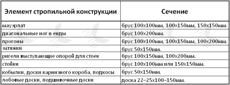 Таблица сечения стропил